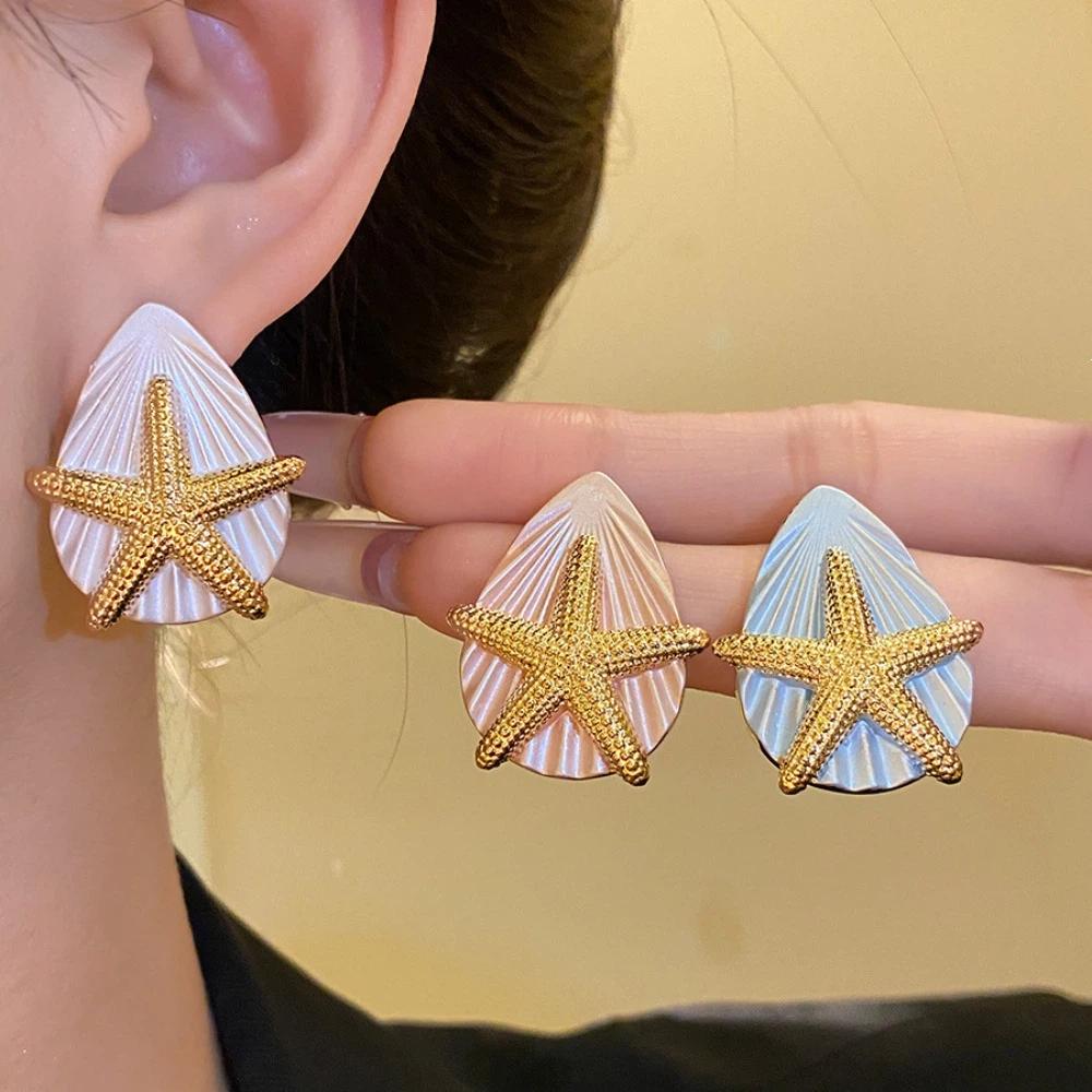 Personality Starfish Ear Studs Oil Drip Copper Star Dangle Earrings Starfish Shell Earrings Daily
