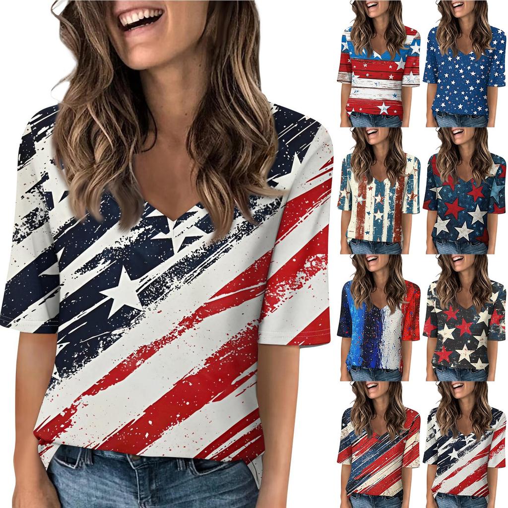 Women's V Neck T Shirts Half Sleeve Tops Printed Casual Summer Tees T Shirt Blouse