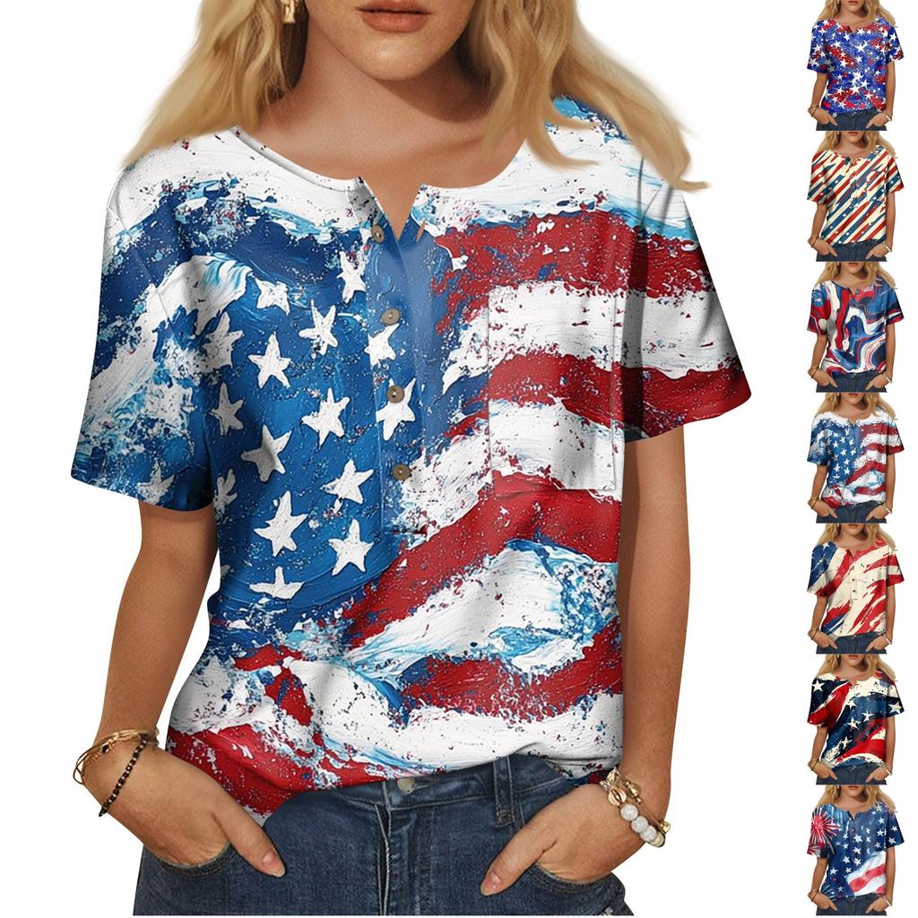Modna damska bluzka z krótkim rękawem i nadrukiem, okrągłym dekoltem