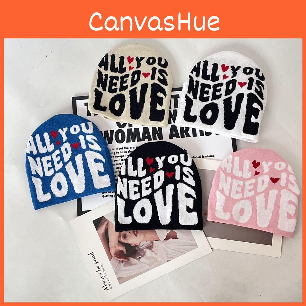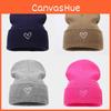 Simple Color Blocked Letter Heart Pattern Women Casual Warm Knitted Hat For Street Style Warmth
