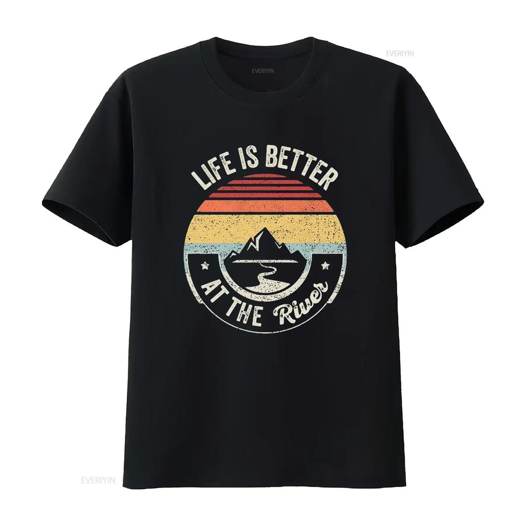 Mens River Floating Retro Life Is Better At The Camping T Shirt Black X Large vintage Washed fashion Stretched Unisex Soft