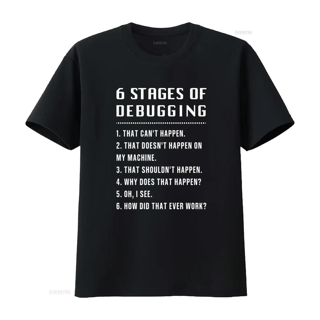 6 Stages Of Debugging T Shirt Funny Engineer Engineering Programmer Coder vintage Washed Top For Everyday Wear graphic