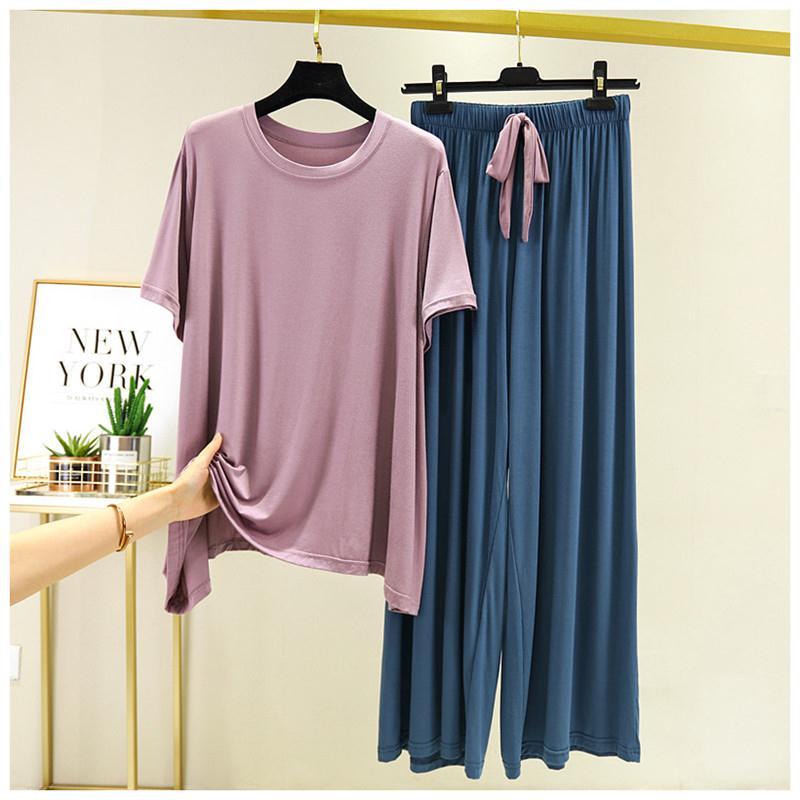 Women's Summer Set: Loose-Fit Short-Sleeve Top + Pants—A Simple, Lightweight Two-Piece Loungewear Set