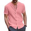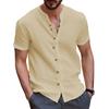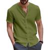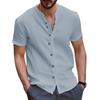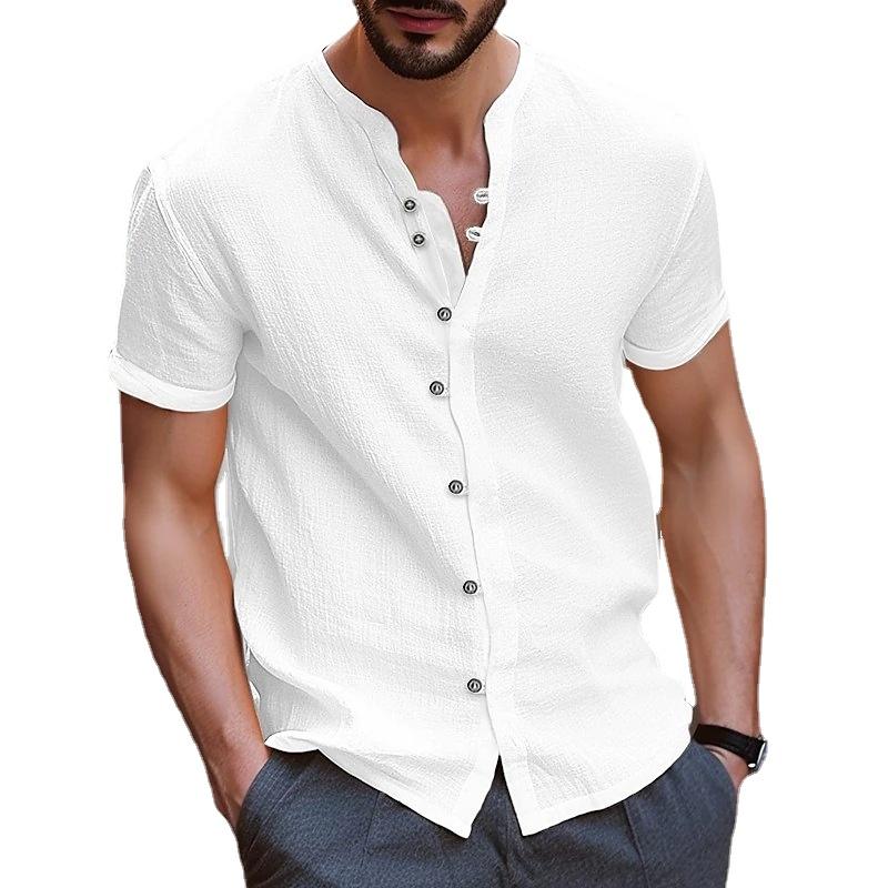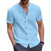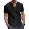 Letnia biała koszula męska bawełniane lniane topy męskie guziki z krótkim rękawem jednokolorowe niebieskie czarne koszule