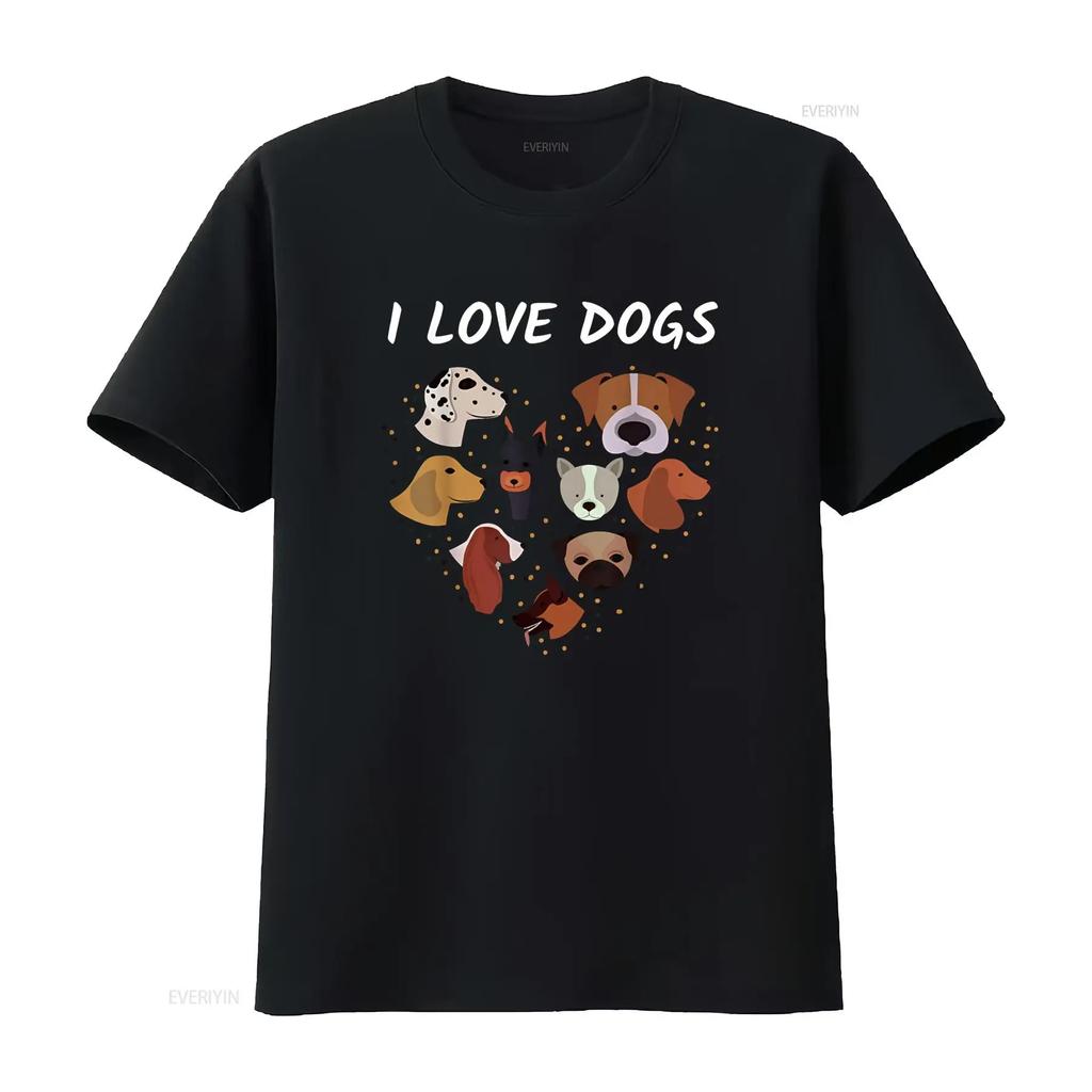 Kocham Psy Pies Serce Miłośnik Slogan Koszulka vintage Prana Codzienny Wygodny Rozciągliwy Unisex Top Do Codziennego Noszenia