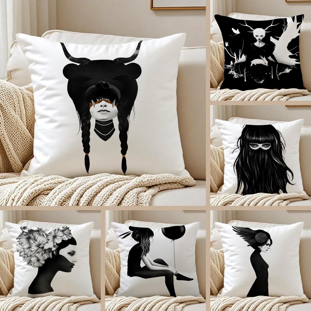 Black White Wonder Girl Cushion Cover Silky Short Plush DoubleSided Printed Pillow Case for Sofa All Seasons Home Decor Gift