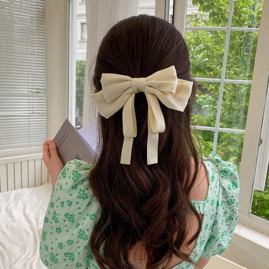 This elegant hairpin features a large, three-dimensional bow meticulously folded and sewn by hand, showcasing full layers and refined craftsmanship. Made from smooth, crisp satin fabric, it offers a soft, shiny texture that resists wrinkles and hair pulling.