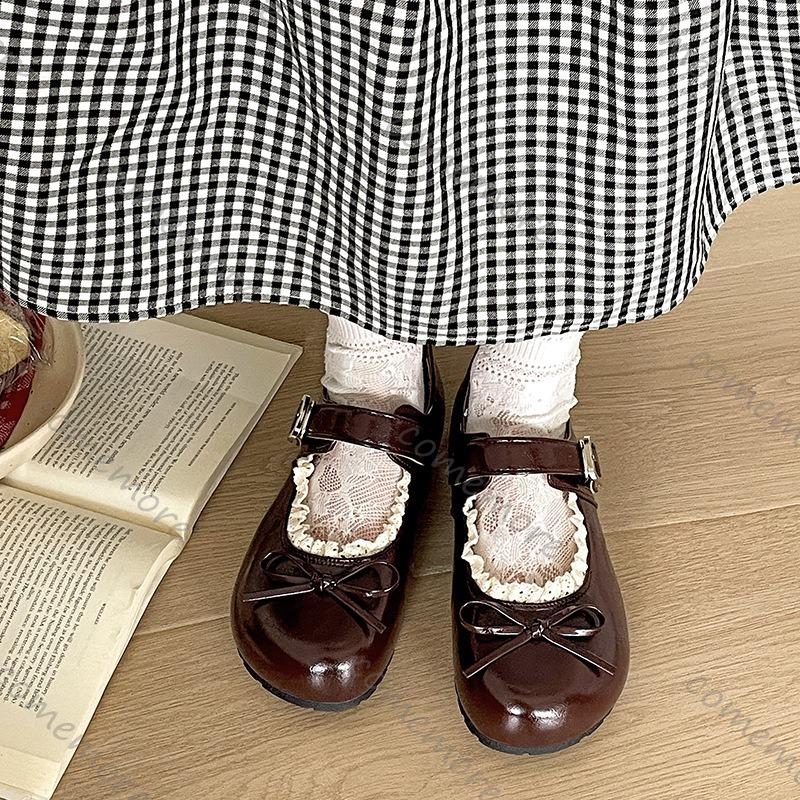 Świętuj czółenka Mary Jane z okrągłym noskiem w stylu japońskim Lolita Gothic z kokardą obuwie damskie jednokolorowe casualowe mokasyny damskie buty na płaskiej podeszwie