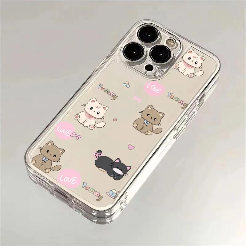 Cute Cartoon Cat Clear Phone Case, Kawaii Kitten Doodle Transparent Protective Cover for iPhone