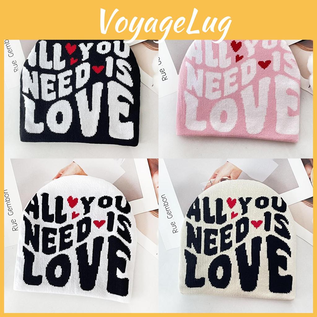 Simple Color Blocked Letter Heart Pattern Women Casual Warm Knitted Hat For Urban Outdoor Use