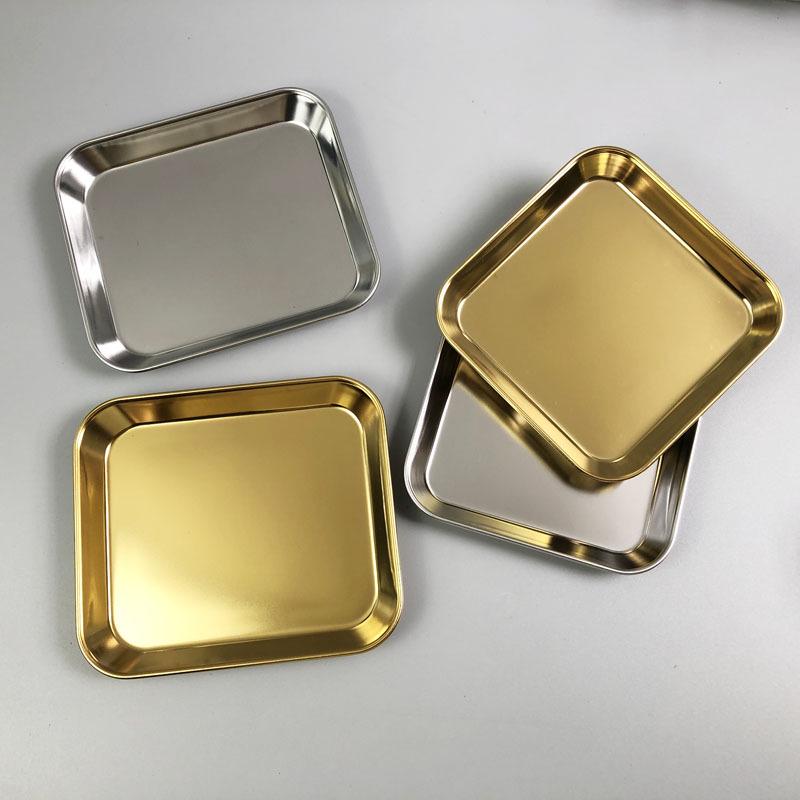 Gold 304 Stainless Steel Square Snack Plate for Korean Hot Pot and Seasoning