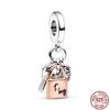 Authentic Copper LockandKey Beads Lucky Heart Shaped Key Charms Pendants Fit Bracelet Handmade Fine Jewellery Gift