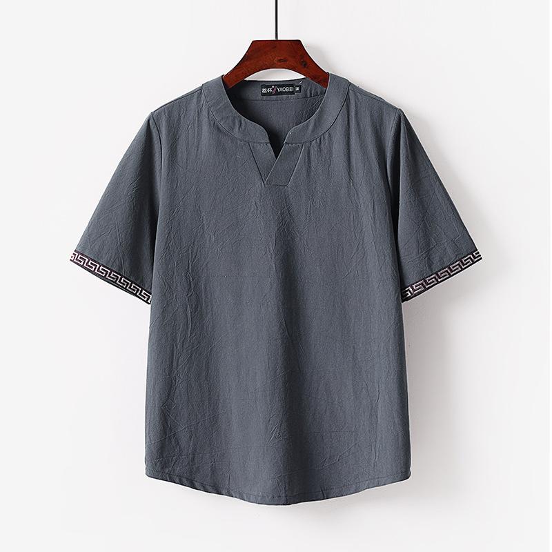 Letni kardigan Męski T-shirt z krótkim rękawem T-shirt Bawełniany i lniany Led Casual Męski T-shirt Lato