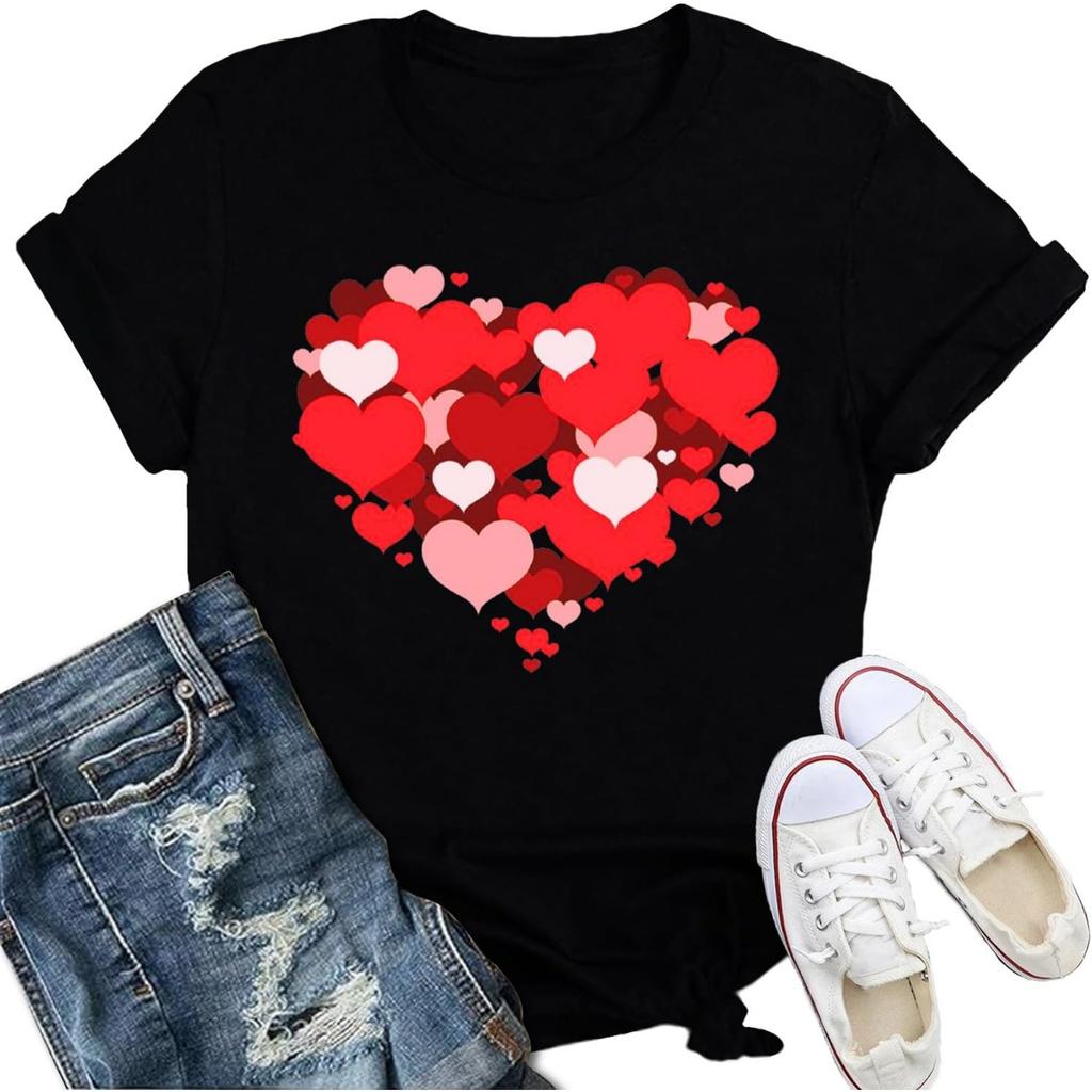 Valentines Day Shirts for Women Cute Love Heart T-Shirt Romantic Valentine Couple Tee Tops
