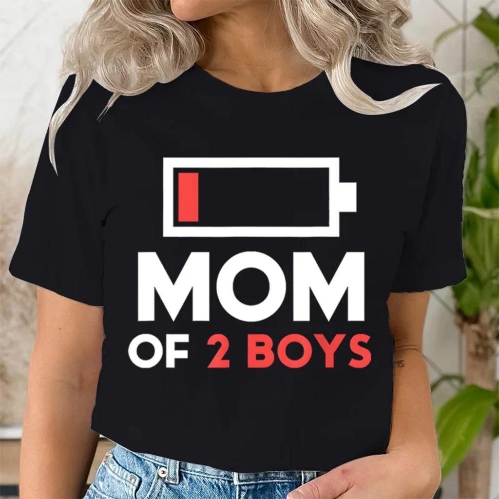 Women Clothing Graphic Mom of 2 Print T Shirt Short Sleeve Ladies Mama Print Clothes Lady Tees Tops Female Womens T Shirt