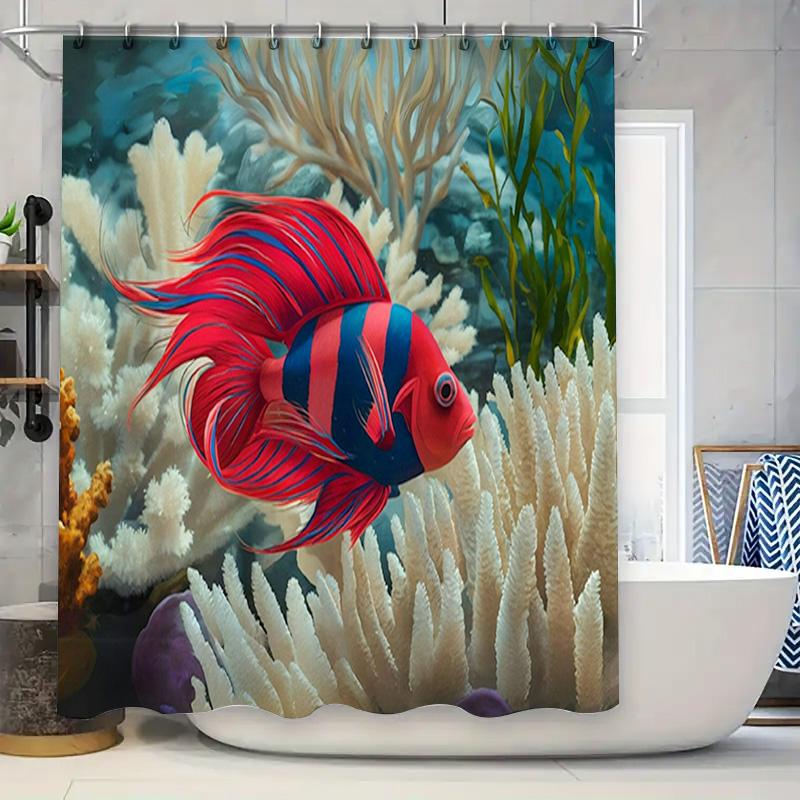 High Quality Printed Fish Coral Shower Curtain 3D Waterproof Bath Decorations for Bathroom Decoration Red Blue Orange Yellow Gre