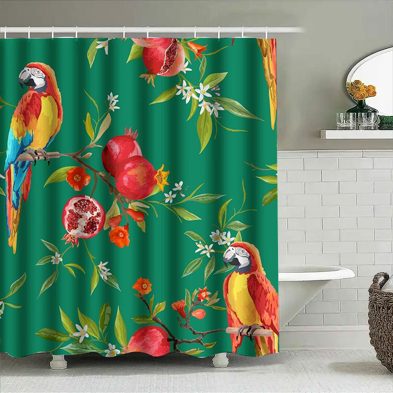 Colorful Parrot Pomegranate Waterproof Shower Curtain Green Floral Bath Decor – Extra Large Size for Home Use