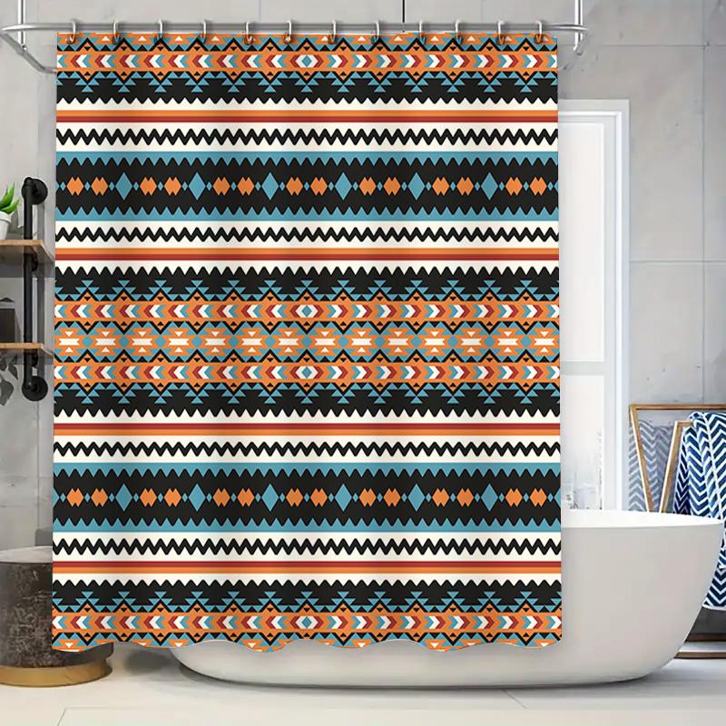 Tribal Pattern Shower Curtain Waterproof Bathroom Decor for Home Decoration Multicolor Geometric Design with Blue, Orange Black