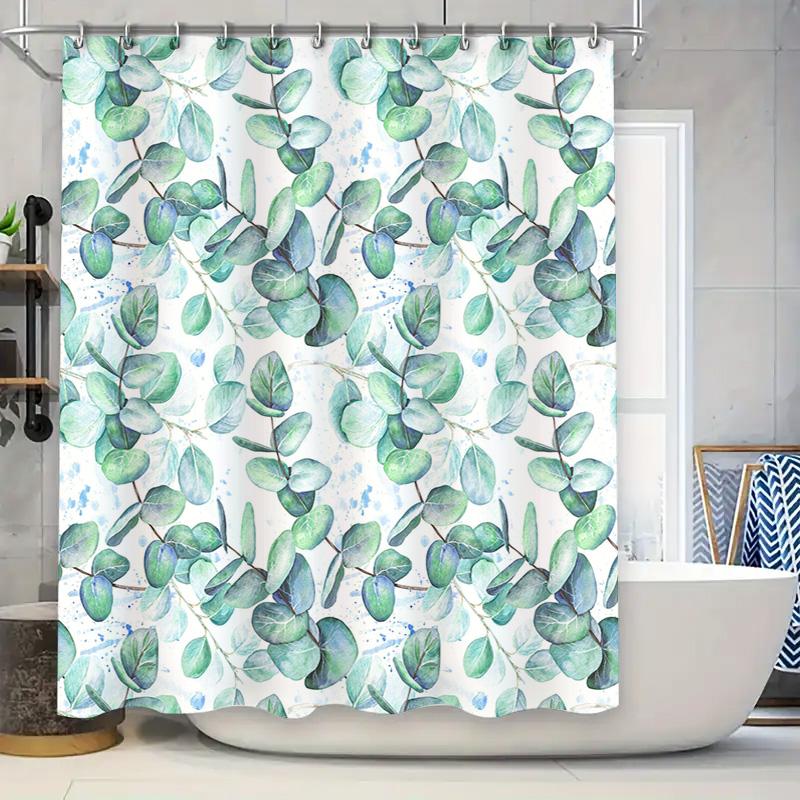 Green Eucalyptus Leaf Shower Curtain for Bathroom Decor Waterproof Fabric Bath Rug Set Waterproof Print Indoor Home Decoration W