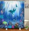 Dolphin Shower Curtain Sea Theme Shower Curtain Hook Washable Dolphin Waterproof 3D Animals Shower Curtain for Bathroom Decor