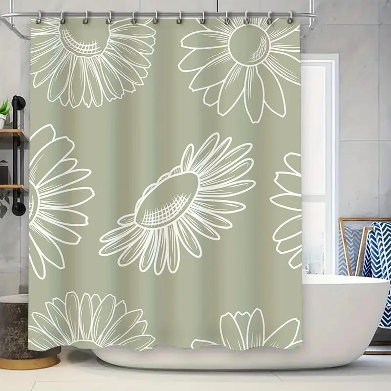Modern Floral Shower Curtain Decorative Waterproof Washable for Bathrooms Green White Pattern