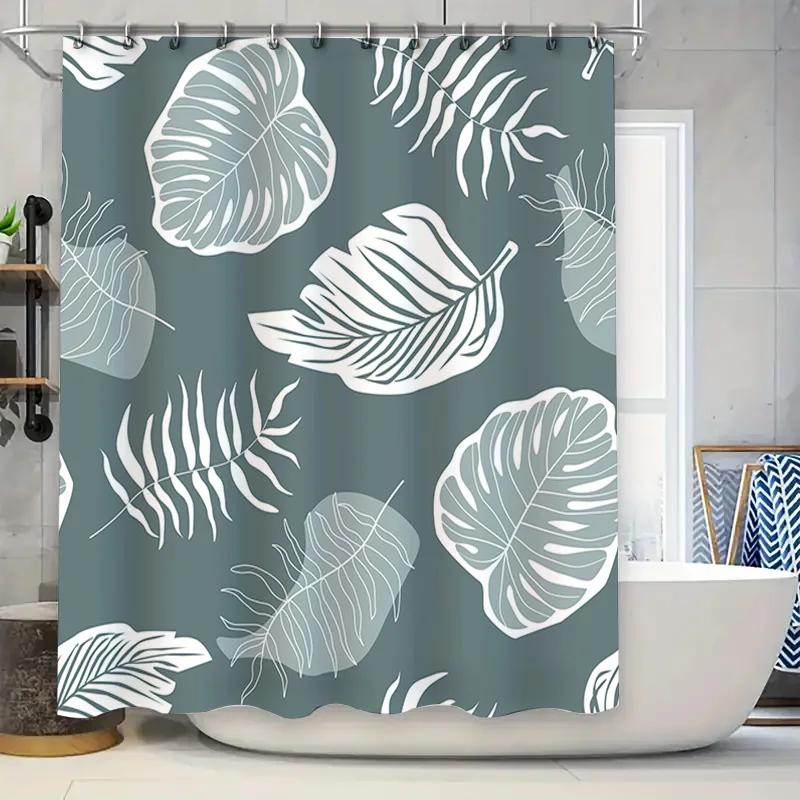 Green Monstera Shower Curtain White Palm Leaf Print Home Decor Waterproof Bath Liner for Bathroom Decorative Size: 72''x84'' (18