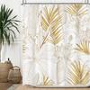 Green Hawaii Tropical Shower Curtain Green Gold Tropical Leaves Plant Fabric Bathroom Curtain Botanical Jungle Bath Curtain Set