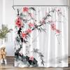 Ink Painting Shower Curtain Chinese Asian Style Cherry Blossom Japanese Woman Classical Bathroom Decor Polyester Bath Curtain