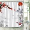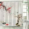 Flower Bird Scenery Shower Curtains Green Bamboo Red Floral Mountain Ink Landscape Bath Curtain Fabric Bathroom Decor with Hooks