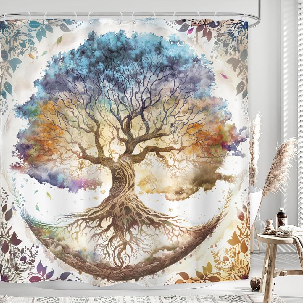 Enchanting Tree of Life Waterproof Shower Curtain - Vibrant Watercolor Design for a Serene and Inspiring Bathroom Decor