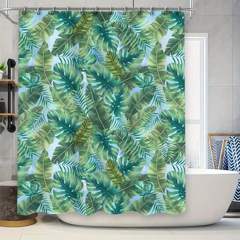 Green Leaves Shower Curtain Bath Decor for Home Bathroom Waterproof Fabric with Hook Rings Perfect Gift for Housewarming or Wedd