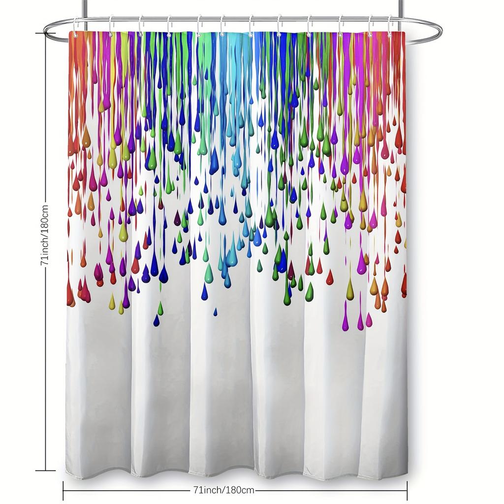 1pc Water-Resistant Polyester Shower Curtain - Colorful Drip Paint Pattern, Plastic Hooks, Machine Washable, Artistic Theme