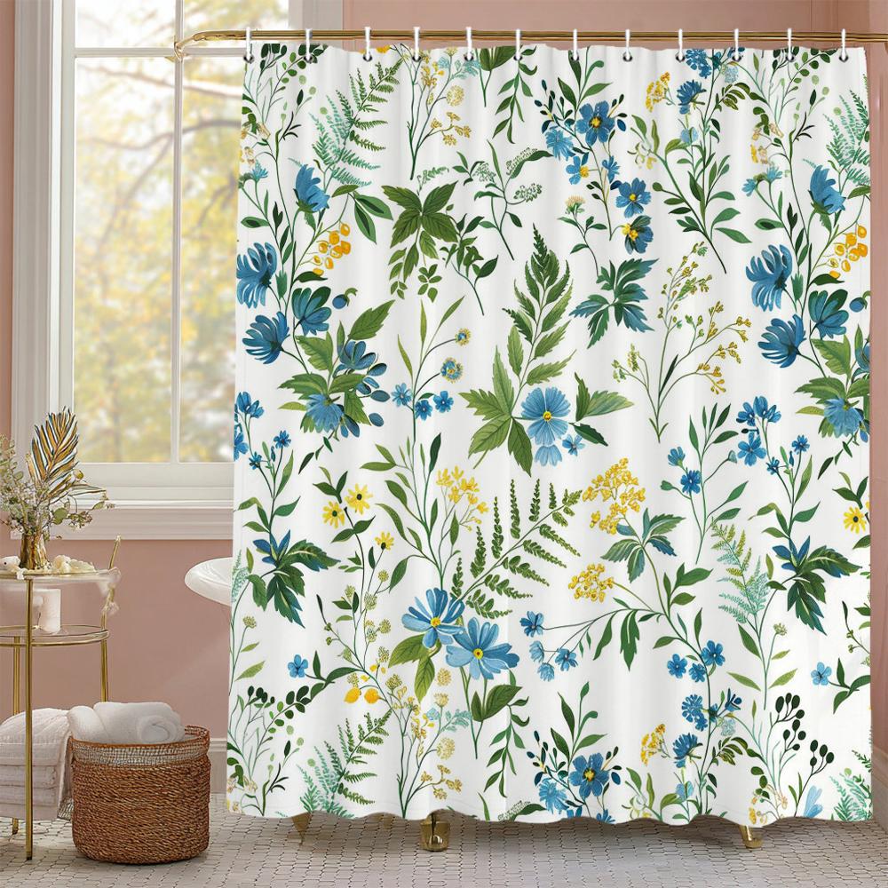 Spring Small fresh Floral , leaves Shower Curtain, Bathroom Decorative Shower Curtain, Waterproof Shower Curtain with Hooks