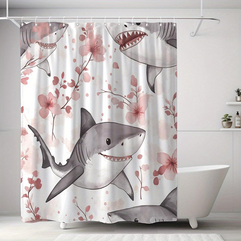 1pc Shark & Floral Shower Curtain - Polyester, 71x71", 12 Hooks, Machine Washable, Modern Design