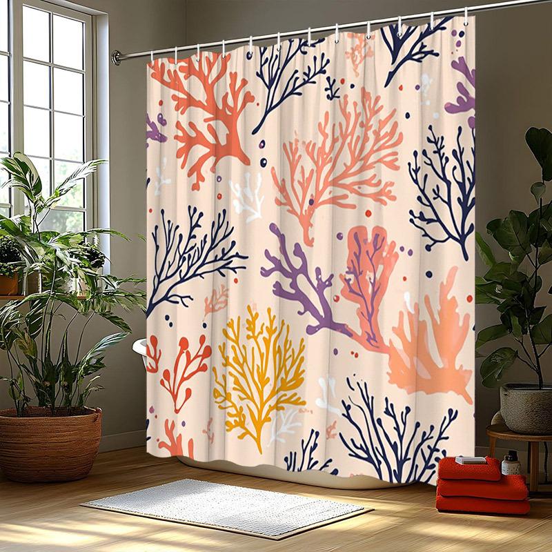 1pc Whimsical Coral Seaweed Shower Curtain - Vibrant Underwater Design, Polyester, Easy to Clean