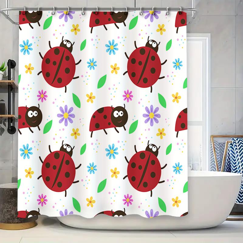 Bright Ladybug Shower Curtain 3D Printed Fabric Waterproof Bathroom Decor with Floral Print