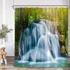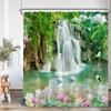 Nature Waterfall Landscape Shower Curtains Forest Lake Crane Lotus Flowers Chinese Style Scenery Home Bathroom Curtain Decor Set