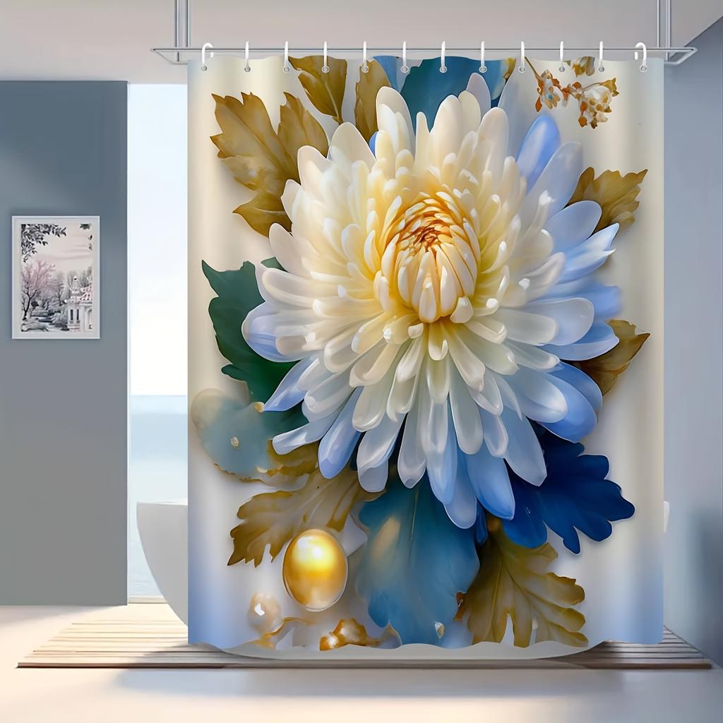 Elegant Golden Autumn Chrysanthemum Bath Curtain, Water-Resistant & Anti-Fog, Hooks Included,Multi-Purpose Decor