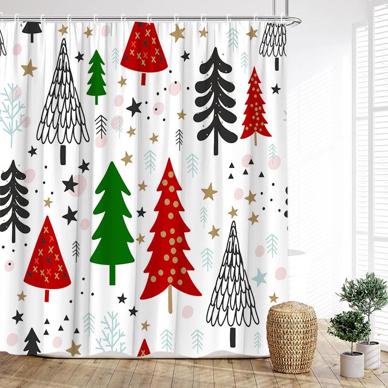 Christmas Shower Curtain Snowflake Star Xmas Trees Bath Curtains Polyester Fabric New Year Home Bathroom Decoration With Hooks