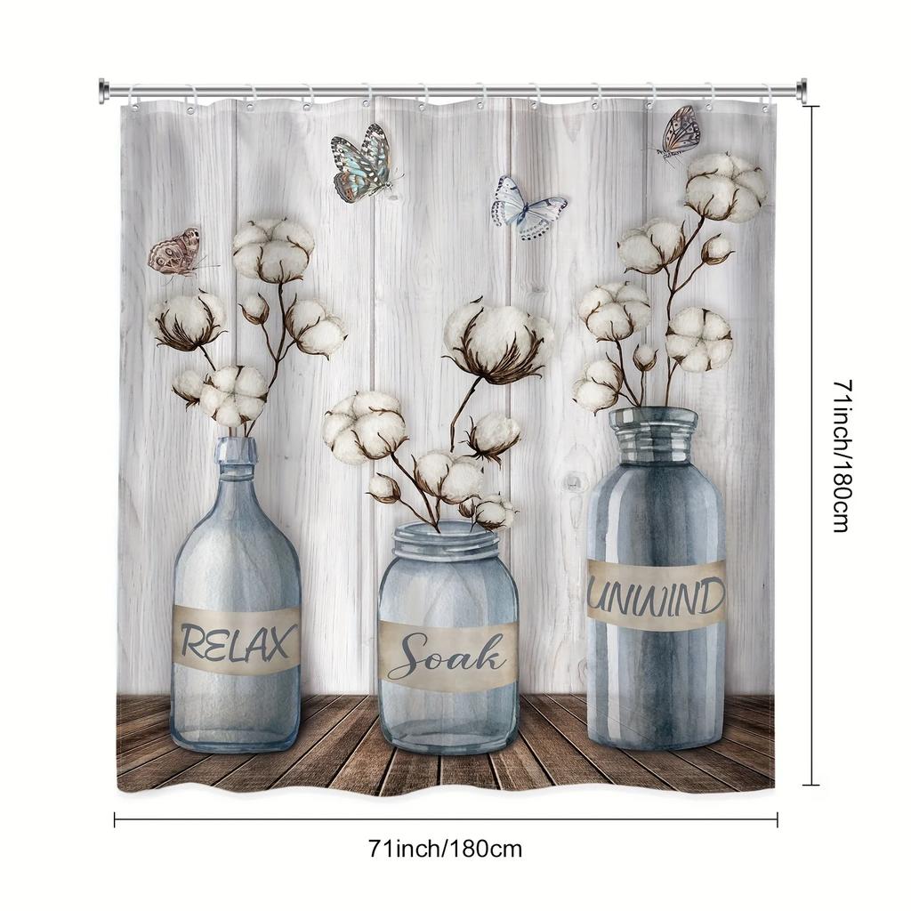 1pc Rustic Farmhouse Shower Curtain - Butterfly Vintage Farm, White Barn Door Design - Country Modern Western Wood Plank Theme