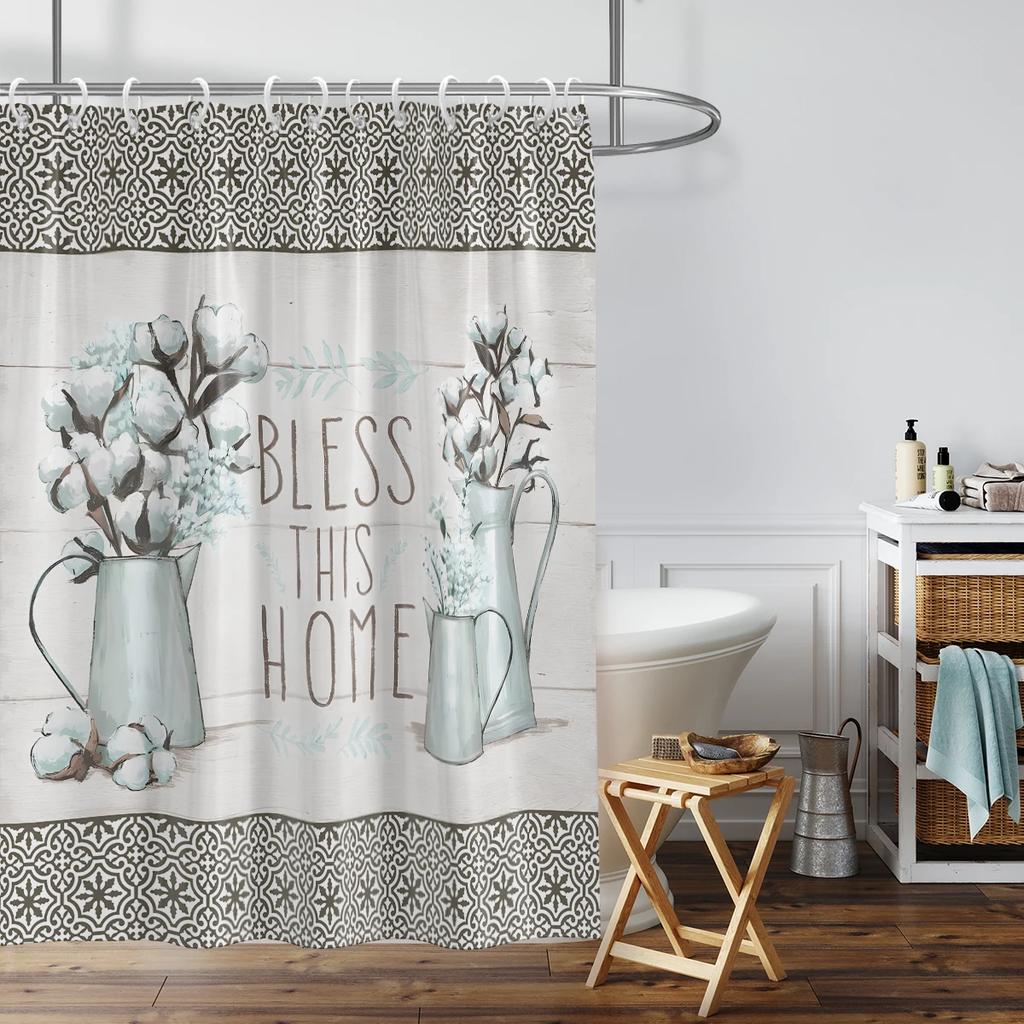 1PC cotton vase home pattern printed shower curtain, waterproof and washable, with 12 hooks, bathroom shower, bathtub, home use