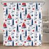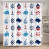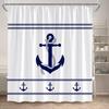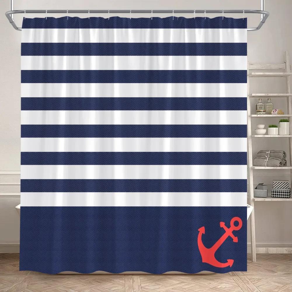 Blue And White Striped Shower Curtain Modern Geometric Nautical Anchor Bath Curtains Polyester Fabric Bathroom Decor with Hooks