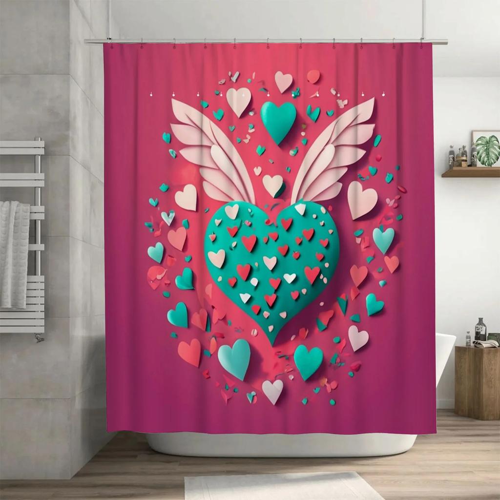 Winged Heart Romantic Shower Curtain - Waterproof, Mildew-Resistant, Unique Design Adds Charm to Your Bathroom Space