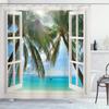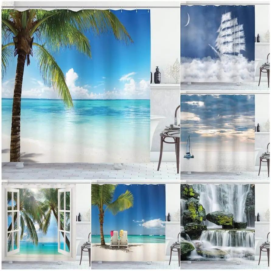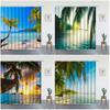 Seaside Ocean Shower Curtain Summer Beach Water Palm Tree Hawaii Landscape Fabric Bathroom Decor Curtains with Hooks Blue Green