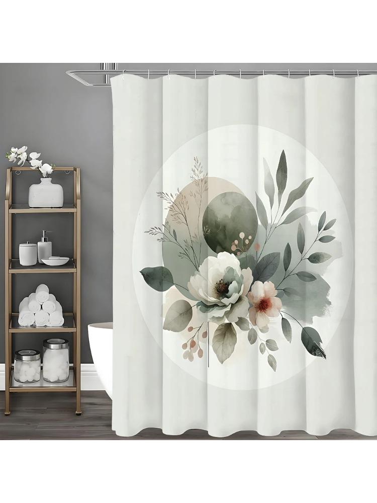 Wodny Floral Okrągły Liść Zasłona Prysznicowa, Dekoracyjna Zasłona Prysznicowa do Łazienki, Wodoodporna Zasłona Prysznicowa z Haczykami