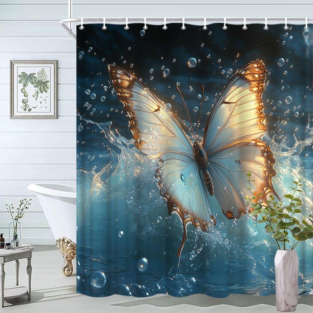 Butterfly Shower Curtain - Fantasy Natural Waterscape, Creative Bathtub Partition, Adds Bathroom Decor,Polyester Fabric,12 Hooks