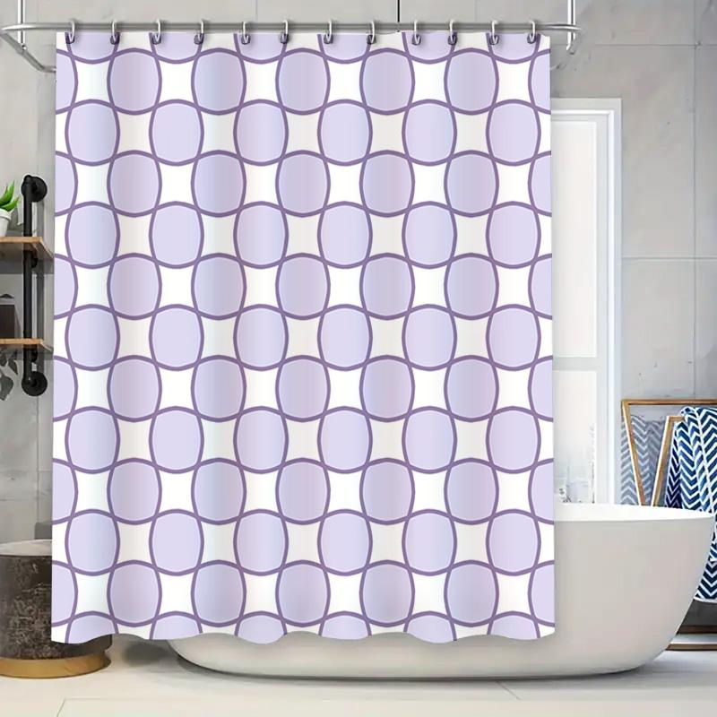 Modern Bath Curtain Set: Purple Circular Pattern Shower Curtain for Bathroom Decor Waterproof Fabric Metal Hook Rings (59x72in)
