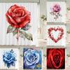 1pc Red Rose Shower Curtain Bathroom Partition Decorative Curtain Machine Washable Rose Print Window Privacy Curtain