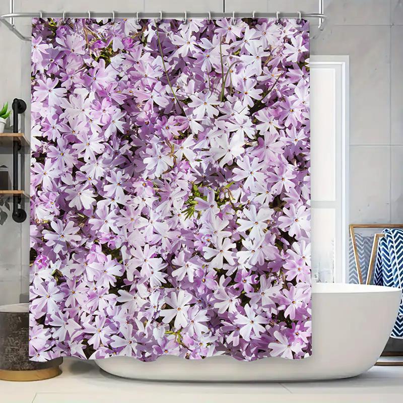 Purple Floral Shower Curtain Bathroom Decorative Waterproof Fabric Window Drapes Home Decoration for Kids Room White Lavender