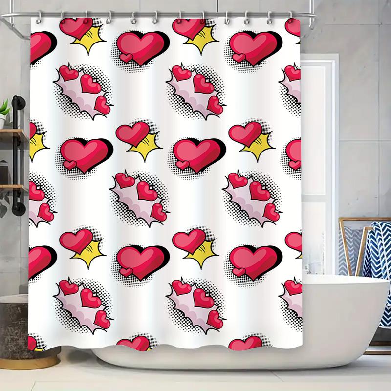 Pop Art Shower Curtain with Red Heart Print Bathroom Decor Customizable Size Waterproof Fabric for Home Decor